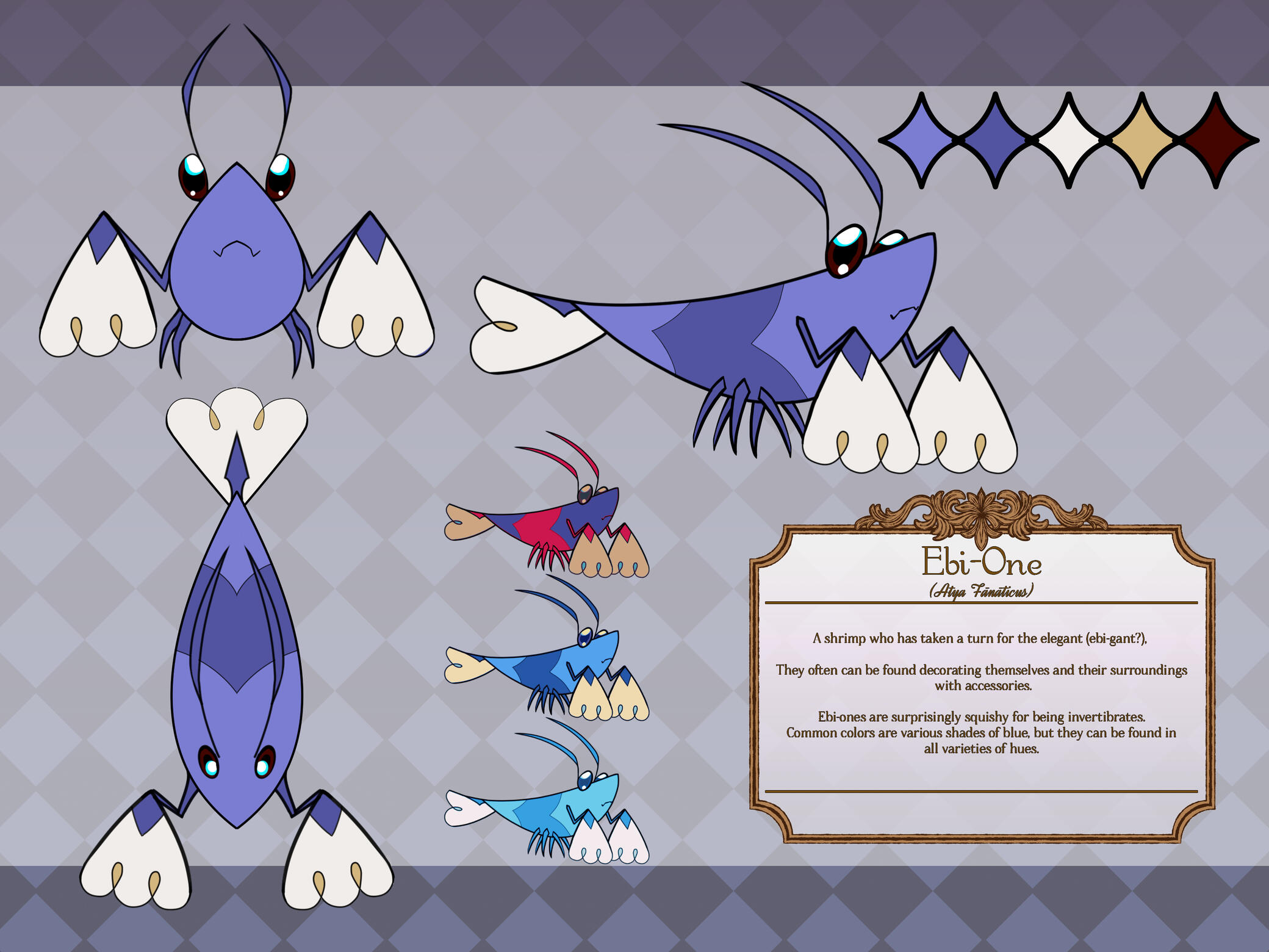 I'm just an old shrimp, mainly with a predilection towards gaming and character design. Shrimple as.The genres I bounce between for streams can be pretty varied. For games, I mostly like older-style games, like RPGs, horror, and boomer shooters/FPSes, as well as indie games that shine with passion. Even with high energy games, I try to keep a chill vibe. You can see what I've streamed here.All the art on this page, as well as my models, is done by me. Interested in your own? Get in touch!